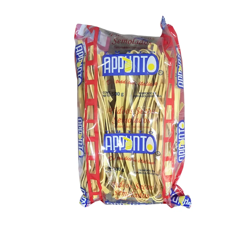 Los Fideos Appunto 500g ofrecen calidad y sabor en distintas variedades para acompañar todas tus comidas. Disponibles en cinta amarilla, cinta verde, moña mediana, moña chica, corbata, tirabuzón amarillo y ñoqui tricolor.