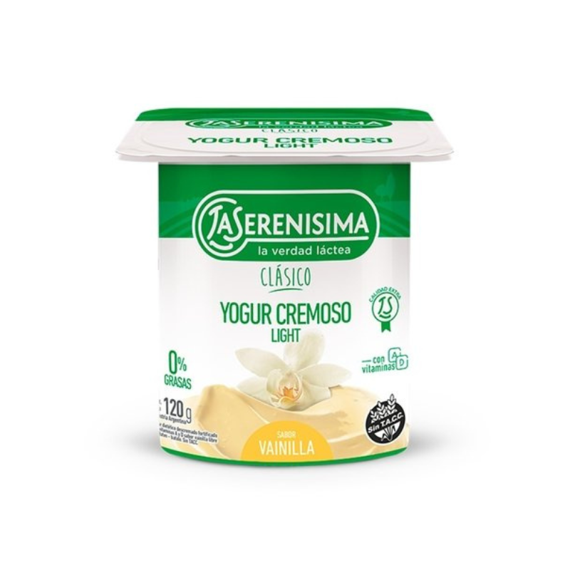 Yogur La Serenísima clásico entero o light 120g. Cremoso y nutritivo, ideal para desayunos y meriendas.